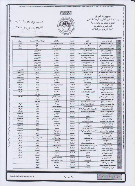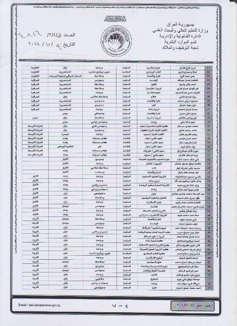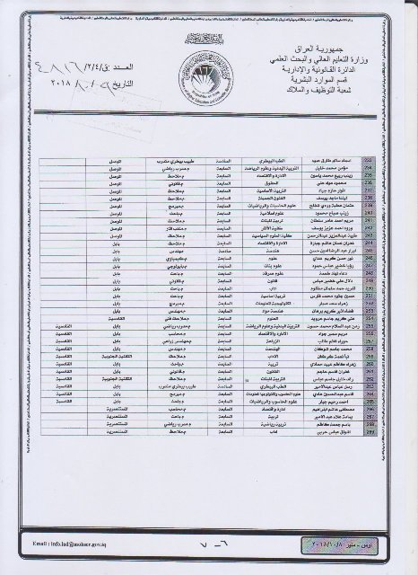 وقامت الوزارة بنشر اسماء الذين تم تعيينهم في تلك الكليات والمعاهد والبالغ عددهم 275 اسما.
