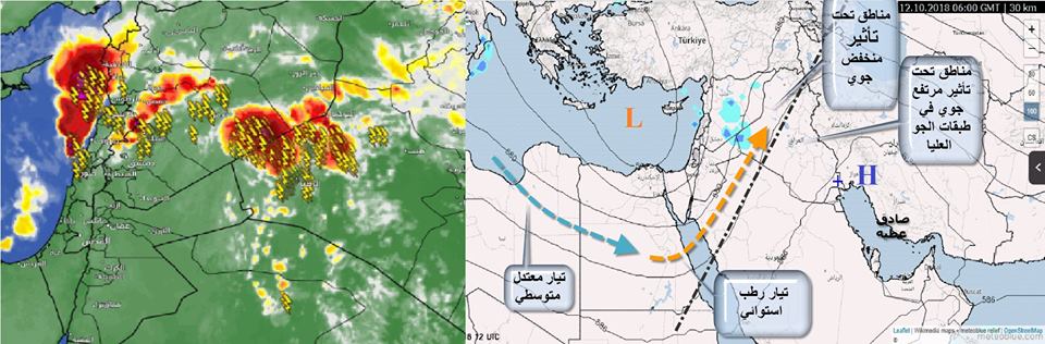 وذكر المتنبىء الجوي الأقدم في مطار البصرة صادق عطيه، في منشور بصفحته على "فيسبوك" اليوم، 12 تشرين الأول 2018، ان السحب الرعدية الكثيفة تنشط على وسط وشمال الانبار، كما ان هناك سحب ممطرة في مناطق من شمال العراق صباح اليوم، مبينا ان المرتفع الجوي يمنع تشكل أي حالة جوية في الجنوب والوسط.