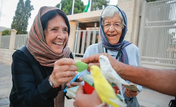 زيارة السياح الأجانب لمقبرة الشاعر "حافظ الشيرازي" في اليوم الوطني لتكريم الشاعر بمدينة شيراز مركز محافظة فارس جنوبي ايران.