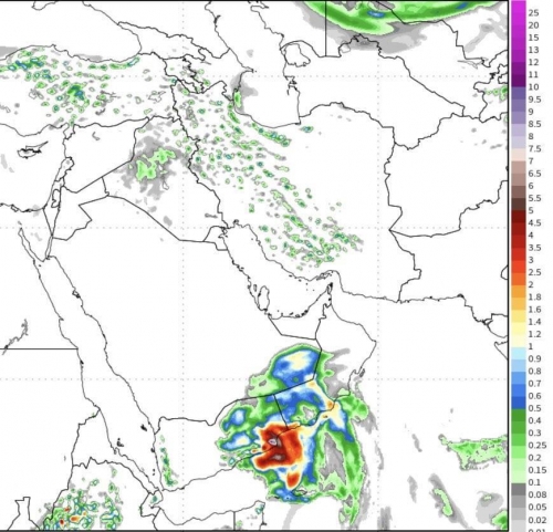 وتابع عطية "كذلك لا نستبعد رياح هابطة من السحب تؤدي الى تصاعد للغبار" لافتا الى "تأثير العاصفة المدارية {لبان} على اليمن وامطار فيضانية متوقعة اليوم هناك"