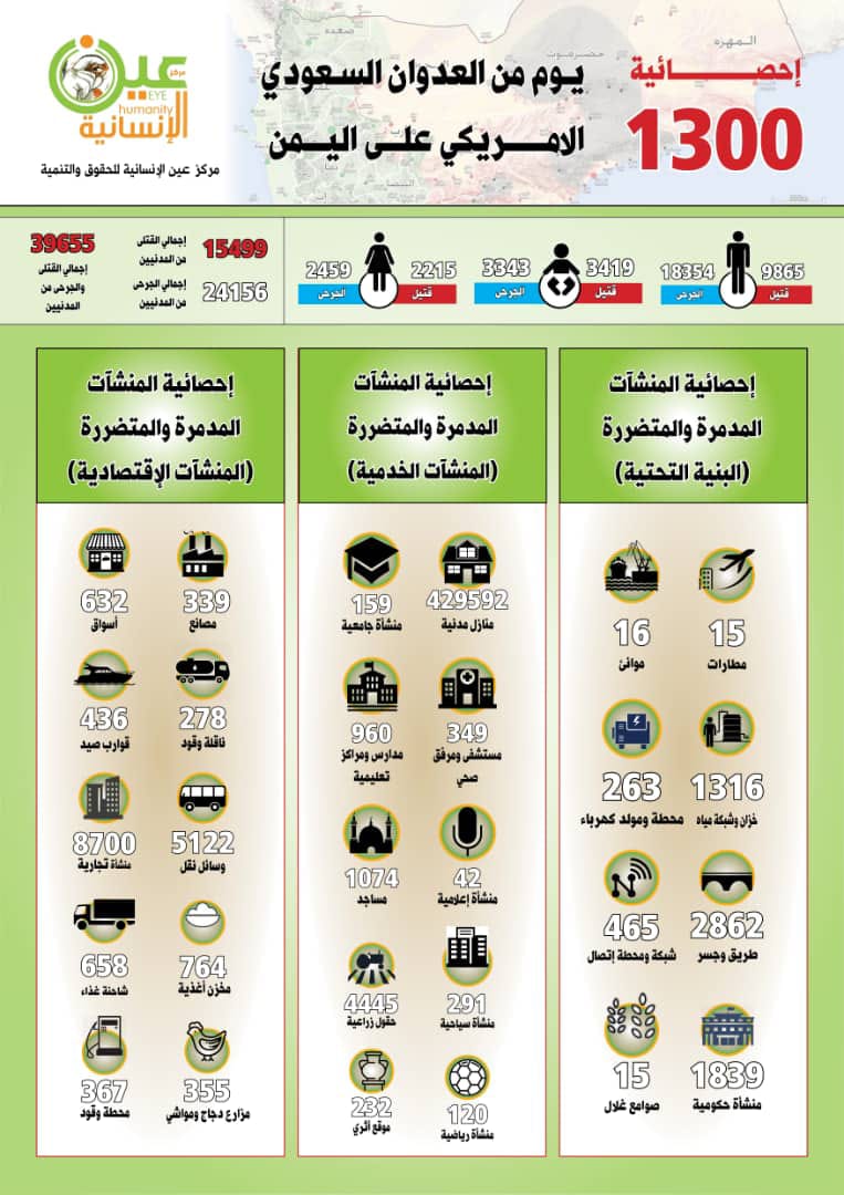 اليمن - الكوثر: اصدرت مصادر يمنية إحصائية عن العدوان السعودي الاميركي على البلاد.