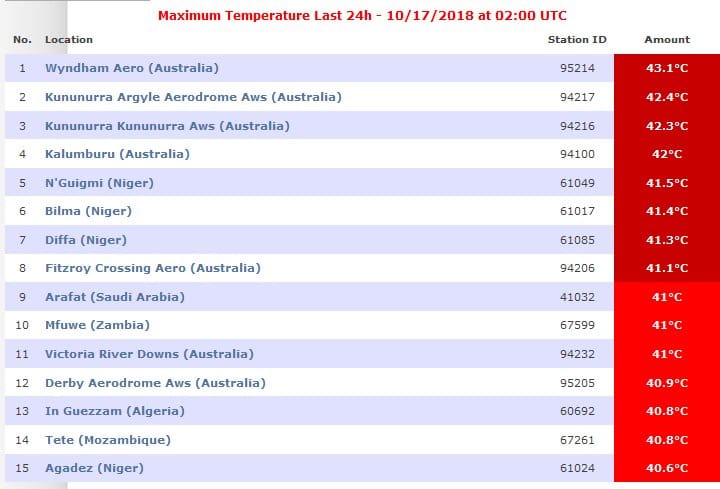 من جهته أكد المتنبىء الجوي الأقدم في مطار البصرة، صادق عطيه، ان العراق خرج من تصنيف الدول الاعلى حرارة مع انتهاء فصل الصيف، مبينا ان "التنافس تحول الى النصف الجنوبي من الارض الذي يحل الصيف ضيفا عليهم" .