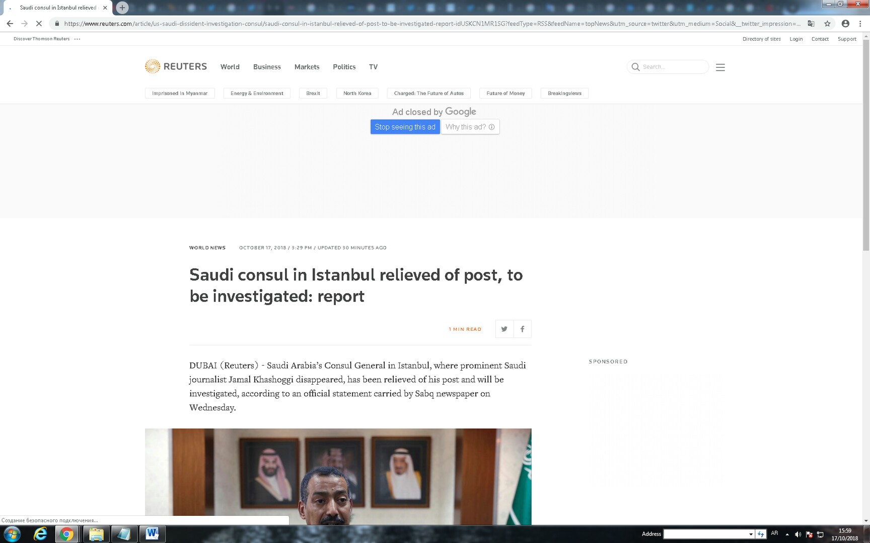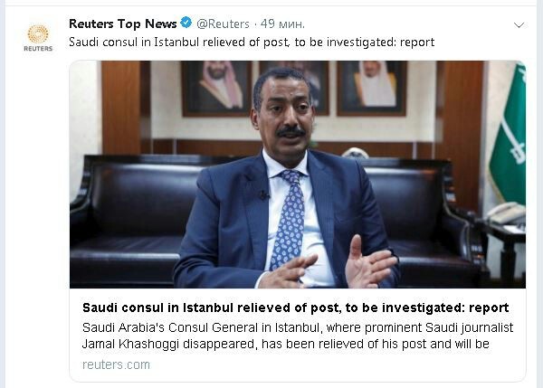 وأفادت وكالة رويترز نقلا عن صحيفة "سبق" السعودية، اليوم الأربعاء، بأن القنصل العام السعودي باسطنبول محمد العتيبي أعفي من منصبه وسيجري التحقيق معه عن انتهاكات حصلت في القنصلية.