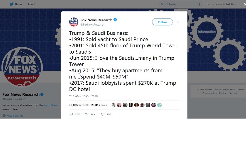 وكان الرئيس الأمريكي دونالد ترامب قد أكد قبل يوم من نشر هذه القائمة، أنه لا يرتبط بأية مصالح مالية مع السعودية، واصفا أي أخبار تناقض ذلك بأنها "زائفة".
