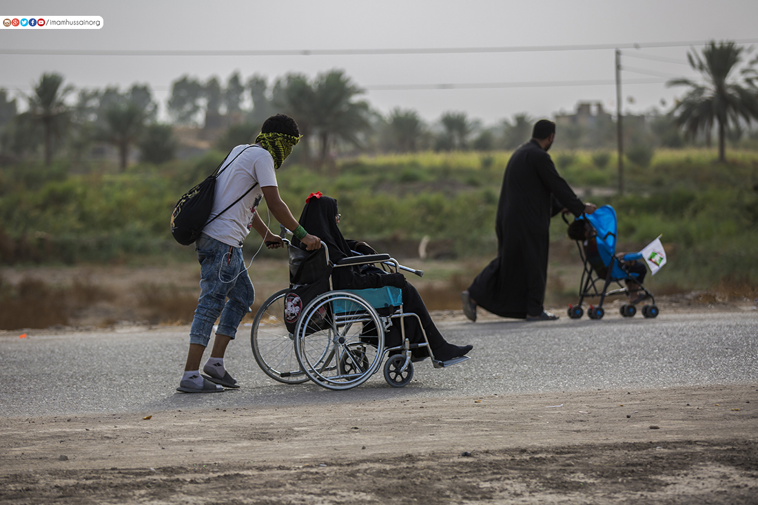 العراق - الكوثر: نشر موقع العتبة الحسينية المقدسة صوراً للمشاركين في مشاية زيارة الأربعين للإمام الحسين عليه السلام، وفيها مشاهد مؤثرة لأشخاص قدموا للمشاركة رغم صعوبة مشيهم أو إعاقة بعضهم، كما ظهر فيها أطفال رضع بصحبة أهلهم في مواكب العشق الحسيني.