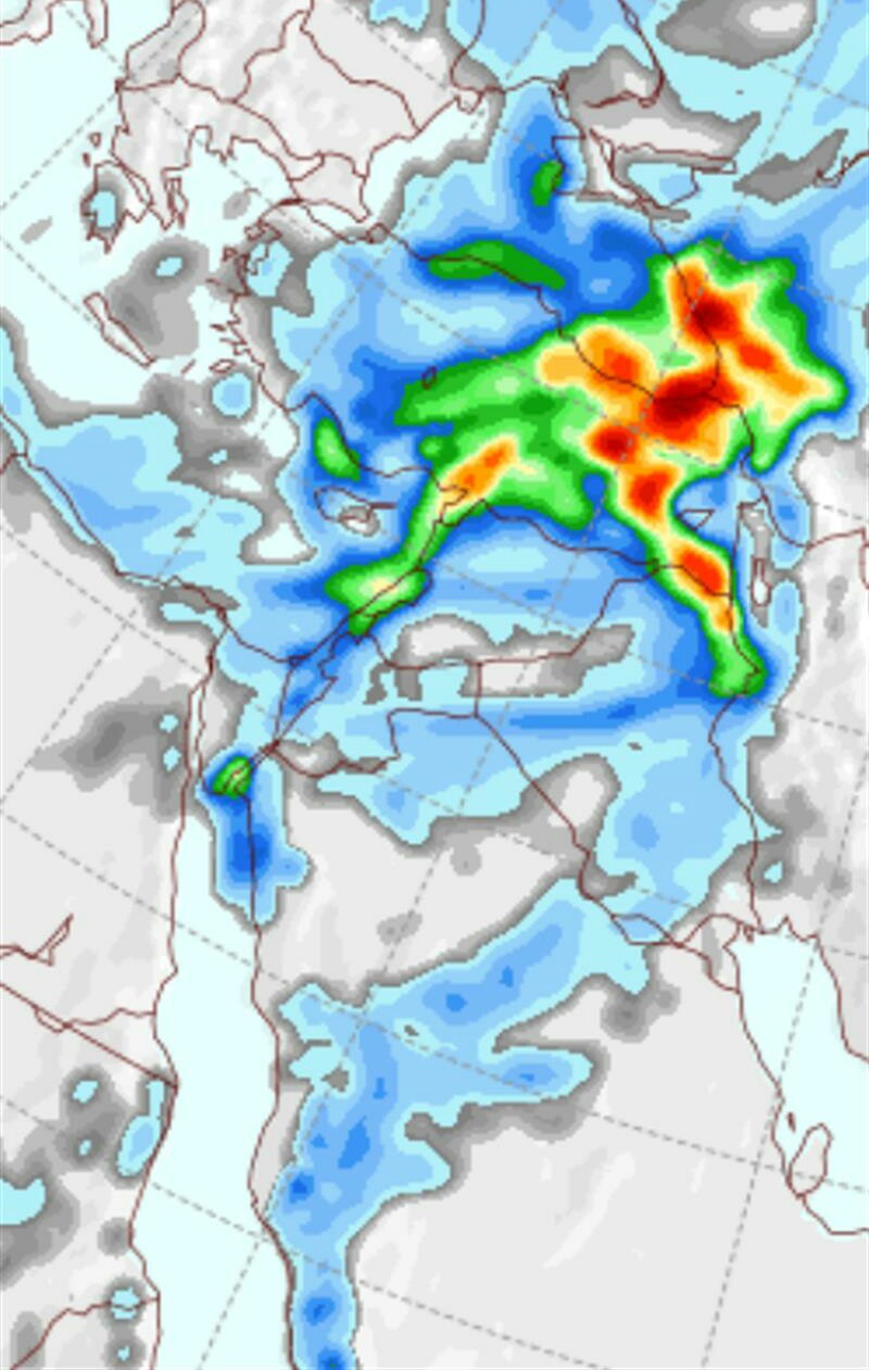 واوضح، انه "يبدأ بشكل تسلسلي من شمال بلاد الشام على شكل منخفض جوي شمالا ويمتد خلال باقي النهار والليل نحو كافة المناطق من بلاد الشام وشمال مصر والعراق على شكل حالة مركبة بامطار رعدية غالبا مصحوبة بهبات رياح متوسطة السرعة الى شديدة أحيانا ويستمر حتى مساء الجمعة وتستمر الامطار على العراق حتى مساء السبت.