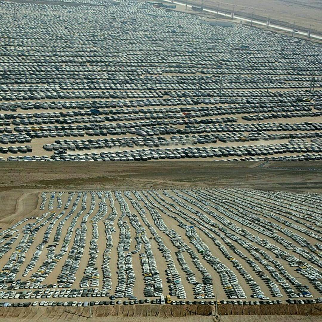 تصوير جوي.. أكبر موقف سيارات في العالم لزوار الأربعين في إيران