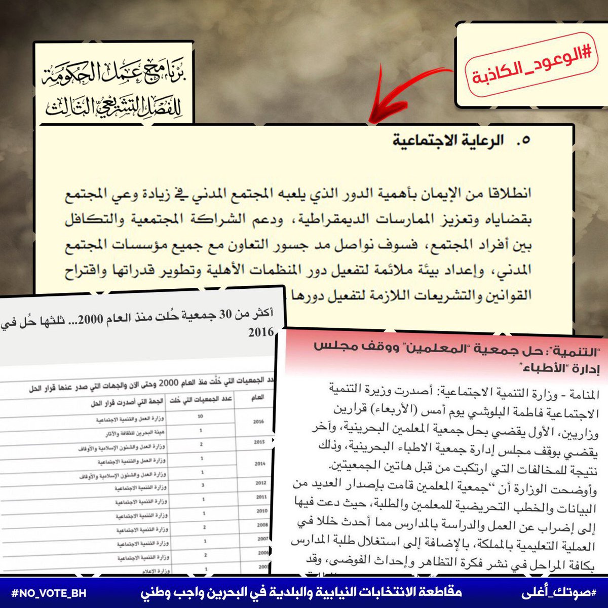 وأختارات حكومة البحرين #نلبي_الواجب شعارا رسميا لحملتها الانتخابية المزمع انعقادها الشهر المقبل وانتقد نشطاء بحرينيون شعار الحملة الانتخابة معتبرين أن الشعار الرسمي للانتخابات #نلبي_الواجب إيحاء بإلزام التصويت والمشاركة في الانتخابات واعتبارها "واجبا" وليست "حقا" وذلك كما ورد في الدستور والميثاق والقوانين المنظمة للانتخابات.