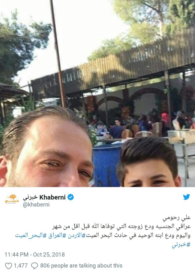 فقد أحد أولیاء أمور الضحايا الطلبة في كارثة البحر الميت بالأردن،طفله الوحید بعد شهر من فقدانه لزوجته.
