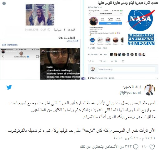 ولكن عندما حاول معدو برامج تلفزيونية التواصل مع سارة أبو الخير، من أجل استضافتها للحديث عن سبقها العلمي، صدمتهم بأن الأمر لم يخرج مجرد مزحة، وأن "ناسا" لم تتواصل معها كما أشيع، وأضافت أن الواقعة برمتها جاءت فى إطار المزاح، وأن ما شاهده الجميع من رسائل عبر وسائل التواصل الاجتماعي هي في إطار "الفوتوشوب"، وتعديل الصور على صفحات الوكالة.