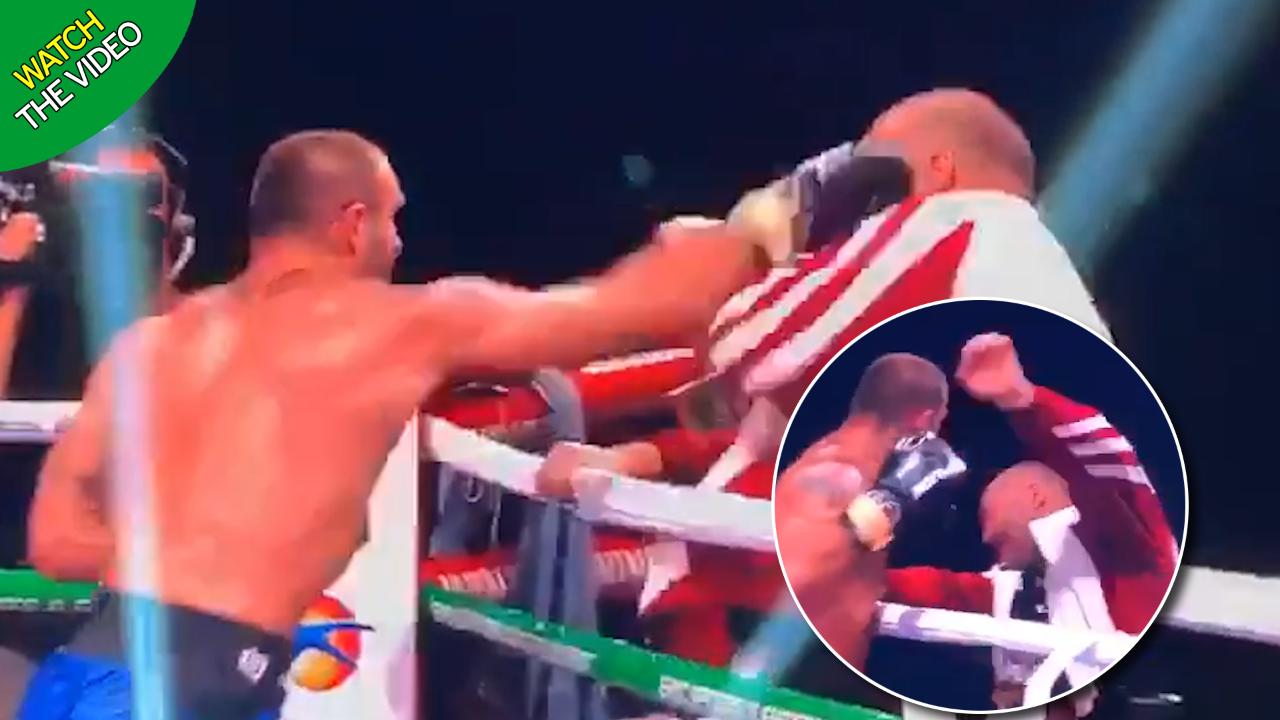 وفي ثوان سارع الحكم للتدخل بعد ملاحظة القتال.