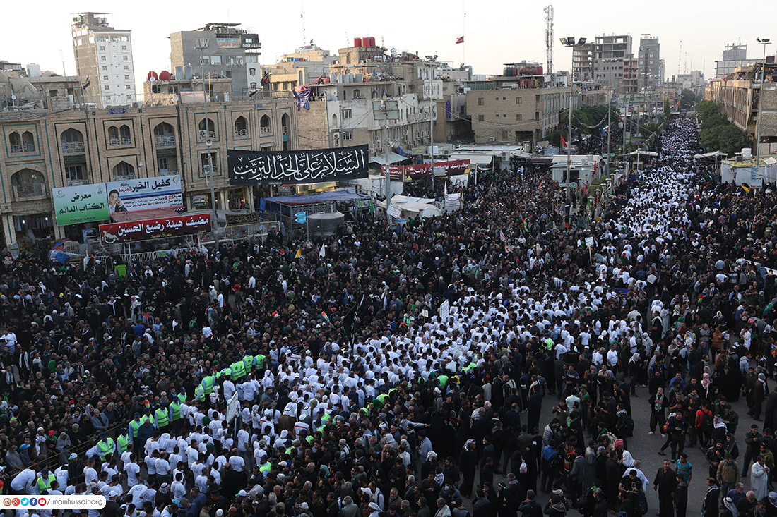العراق - الكوثر: احتشد الملايين من عشاق الامام الحسين عليه السلام لاحياء ذكرى اربعينته الخالدة مجموعة من الصور نقدمها اليكم حاكية عن العشق الهي المتجذر في قلوب المستضعفين في الارض.