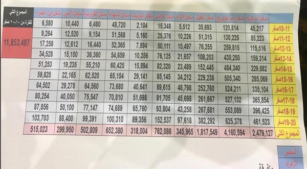وقال مدير المركز رسول فضالة بحسب بيان للعتب اليوم ان " عدد الزائرين الذين دخلوا الى كربلاء من مداخلها الاربعة بلغ 11,853,487 زائرا ".