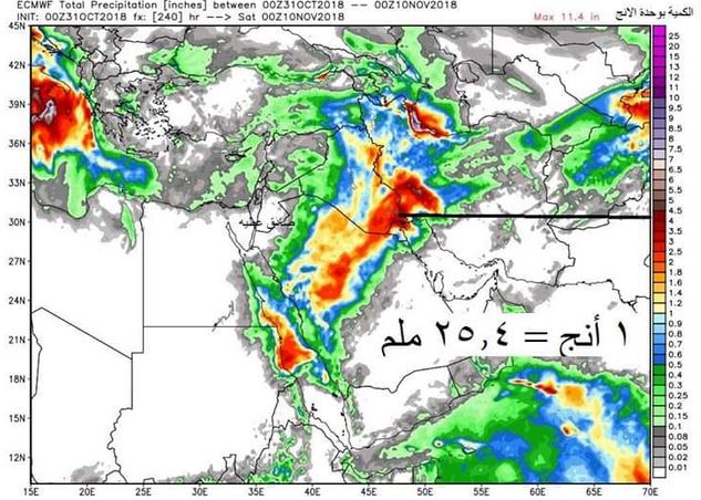 وبين عطيه، أن بدايات هطول الامطار حسب ماترسمه الخرائط يبدأ من جهة جنوب غرب البلاد ( بادية السماوة) فجر السبت المقبل، أما خلال نهار أو مساء السبت فالامطار تبدأ على الانبار وتحديدا غربها .