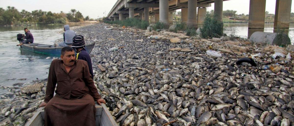وتظهر المقاطع المتداولة آلافا من الأسماك المتكدسة على ضفاف نهر الفرات بمحافظة بابل، وسط ذهول أهالي المنطقة.
