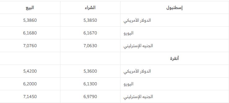 جاءت أسعار صرف الدولار الأمريكي، واليورو والجنيه الإسترليني، مقابل الليرة التركية، في تعاملات اليوم الأربعاء، بإسطنبول والعاصمة التركية أنقرة، عند الساعة 09:30 بالتوقيت المحلي (06:30 ت.غ)، على النحو التالي: