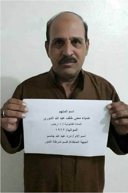 وقال المصدر ان "قوة من شرطة الدور قامت اليوم باعتقال النائب السابق ضياء محي خلف عبد الله الدوري".