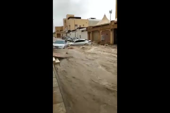 وتظهر هذه المشاهد تقصير أجهزة الدفاع المدني السعودي في حل مشاكل الناس العالقة وسط مياه المطر في شوارع الرياض.