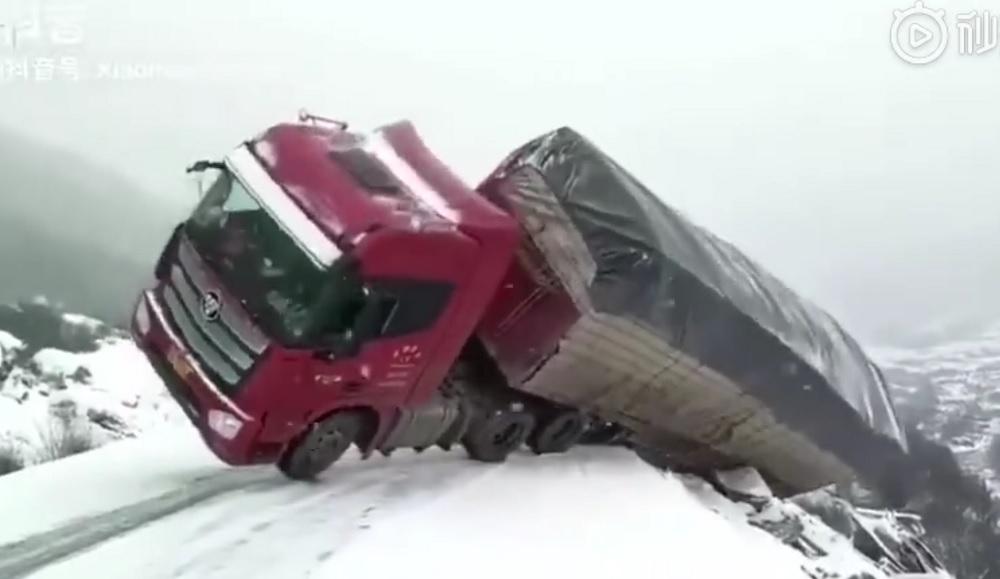 وقام زميل السائق بتصوير اللحظة المرعبة لانقلاب الشاحنة على مقطع فيديو، الذي يظهر عليه كيف فقد السائق السيطرة على الشاحنة عند اقترابها من الوقوع عن المنحدر
