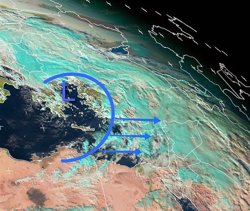 وذكر العيايدة في تدوينة له على موقع التواصل الاجتماعي فيسبوك يوم الاربعاء (21 تشرين الثاني 2018)، ان "اخر البيانات المستلمة عبر الاقمار الصناعية والخرائط تشير الى تقدم جبهة هوائية باردة في الطبقات الوسطى والعليا مصاحبة للمنخفض الجوي الذي اثر بالامس على اليونان يؤثر الان على تركيا، تمتد هذه الجبهة حتى سواحل مصر عبر المتوسط وتتقدم نحو الشرق بالاتجاه نحو بلاد الشام".