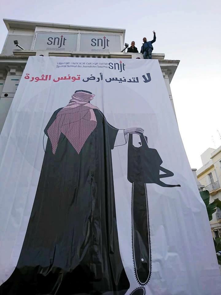 وعبرت النقابة في رسالة مفتوحة إلى الرئيس الباجي قايد السبسي عن رفضها زيارة بن سلمان، وعدتها "محاولة لتبييض سجله الأسود في قمع الصحفيين وانتهاك حقوق الإنسان عامة".