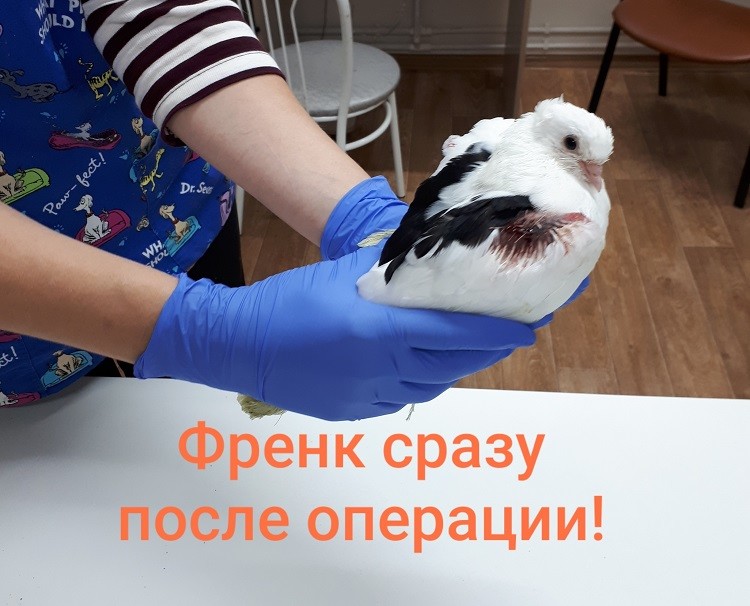 وقام الطبيب المختص بإجراء عملية لكسر جناح الحمامة، والذي تبين أنه كان كسرا مغلقا سهل العلاج، وأطلق على الحمامة اسم "فرينك".