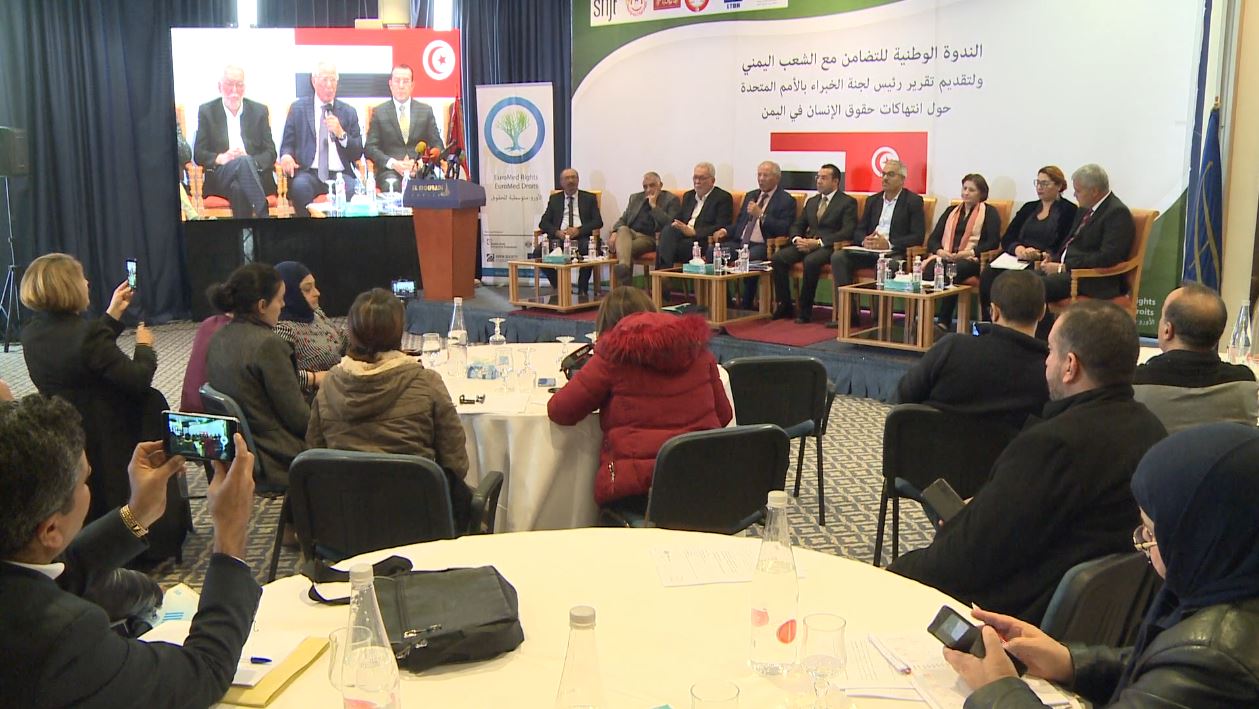 وشهد اللقاء تقديم تقرير لجنة خبراء الامم المتحدة والذي كشف انتهاكات العدوان السعودي باليمن كما دعى الى اعلان مبادرة تونسية جامعة لدعم صمود اليمنيين.