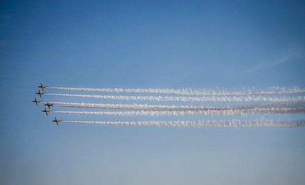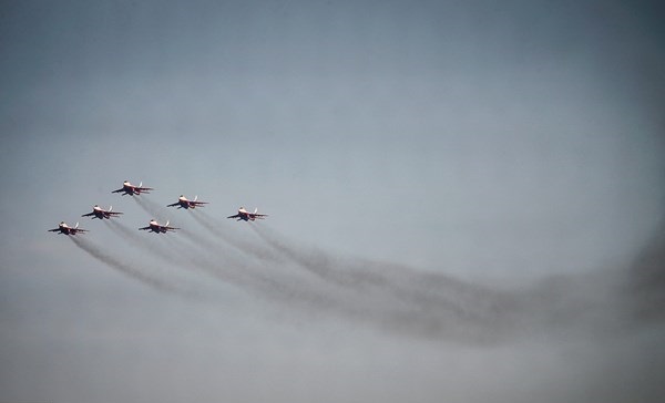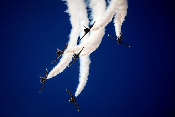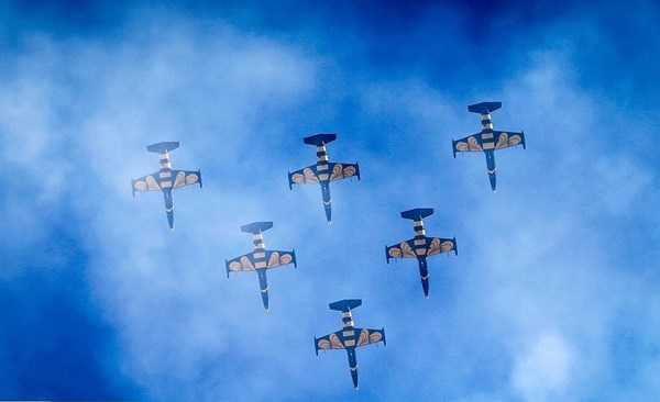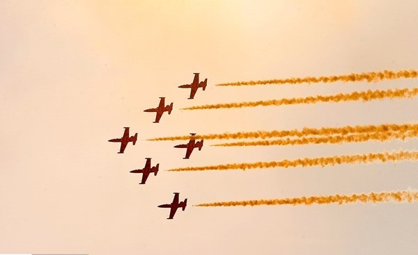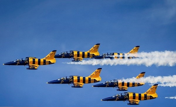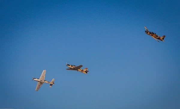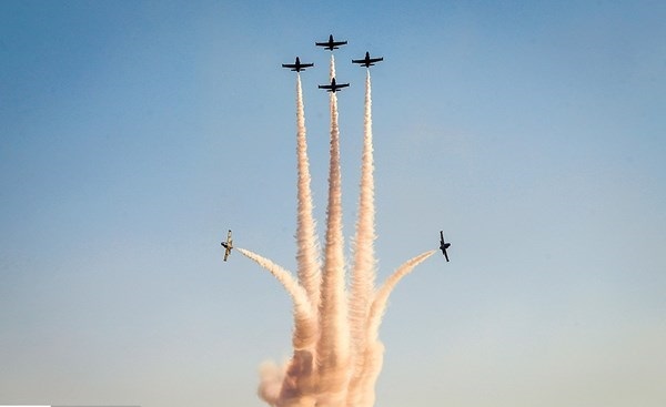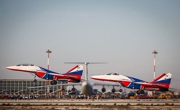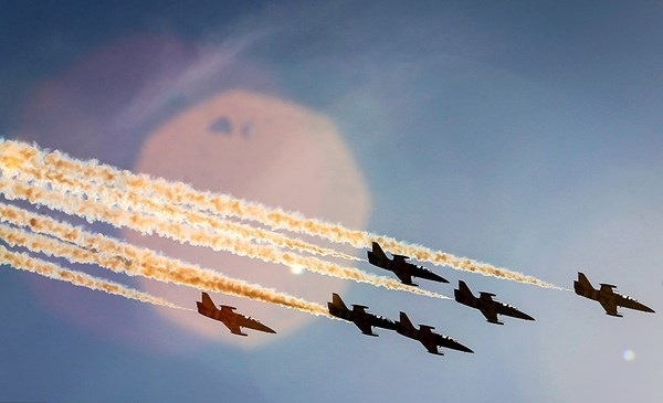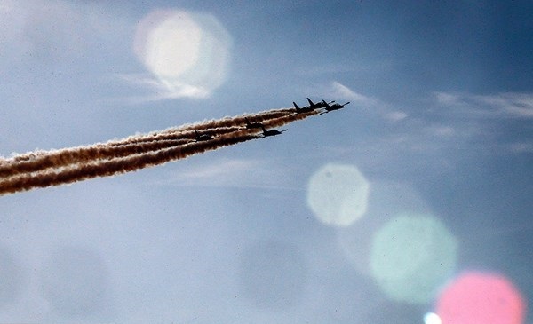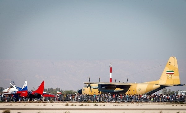 ايران-الكوثر: أجرت المقاتلات الايرانية التابعة للجيش والحرس الثوري بينها "سوخو 22" و "PC7" و "فانتوم 4" و "صاعقة" و "اف 14" عروضا جوية، يوم الثلاثاء، كما قامت طائرة نقل "C-130" بعملية اسقاط شحنات الى الارض وذلك في اليوم الثاني من اعمال المعرض الجوي الدولي في كيش.