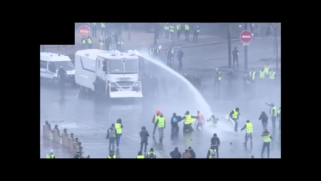 وامطرت السلطات الفرنسية المتظاهرين بقنابل الغاز المسيل للدموع لفض الإشتباكات في العاصمة باريس.