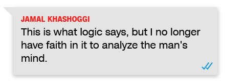 ويقول خاشقجي في إحدى مراسلاته عن ولي العهد السعودي: "يحب القوة والقمع".