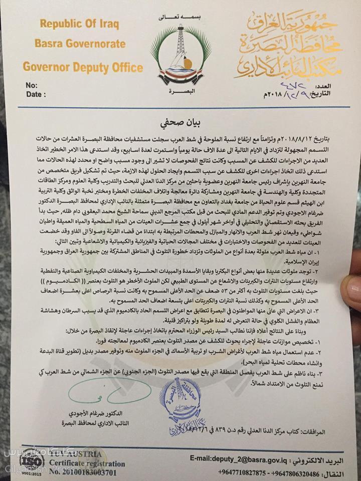 بالوثيقة.. إليك أسباب تسمم مياه البصرة
