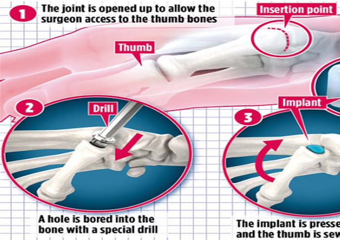 وتستغرق الجراحة بأكملها 30 دقيقة فقط، يتم خلالها وضع الكرة الهلامية في المفصل بين عظام الإبهام، لتعمل كوسادة لتقليل الاحتكاك دون إزالة ما تبقى من الغضروف الطبيعي، وعندما تتوقف العظام عن الاحتكاك ببعضها البعض، يمكن للإبهام التحرك بحرية دون التسبب بالألم.