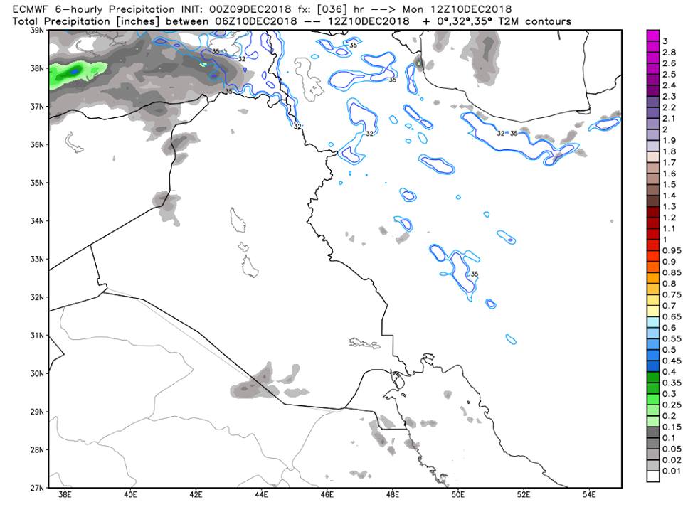 وذكر المتنبئ الجوي الاقدم في مطار البصرة الدولي، صادق عطيه في تدوينة نشرها بحسابه على فيسبوك اليوم (9 كانون الاول 2018)، ان "فرص هطول الامطار تتلاشى تدريجيا خلال ساعات المساء والليل في مدن شمال البلاد (دهوك، وشرق الموصل، واربيل، وكركوك، والسليمانية)".