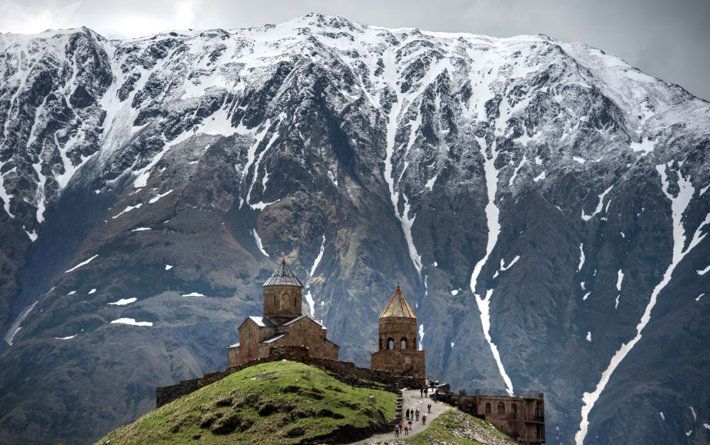 كنيسة على خلفية جبل كازبيك، جورجيا