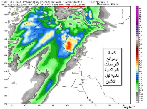 وأضاف" ايضا نلاحظ من خارطة الامطار التراكمية ان بعض مدن الجنوب غير مشمولة بالأمطار لغاية ليل الاثنين بسبب نقص التبريد اللازم في الطبقات العليا رغم توفر الرطوبة في المستويات البنائية والتيار الغربي أيضا".