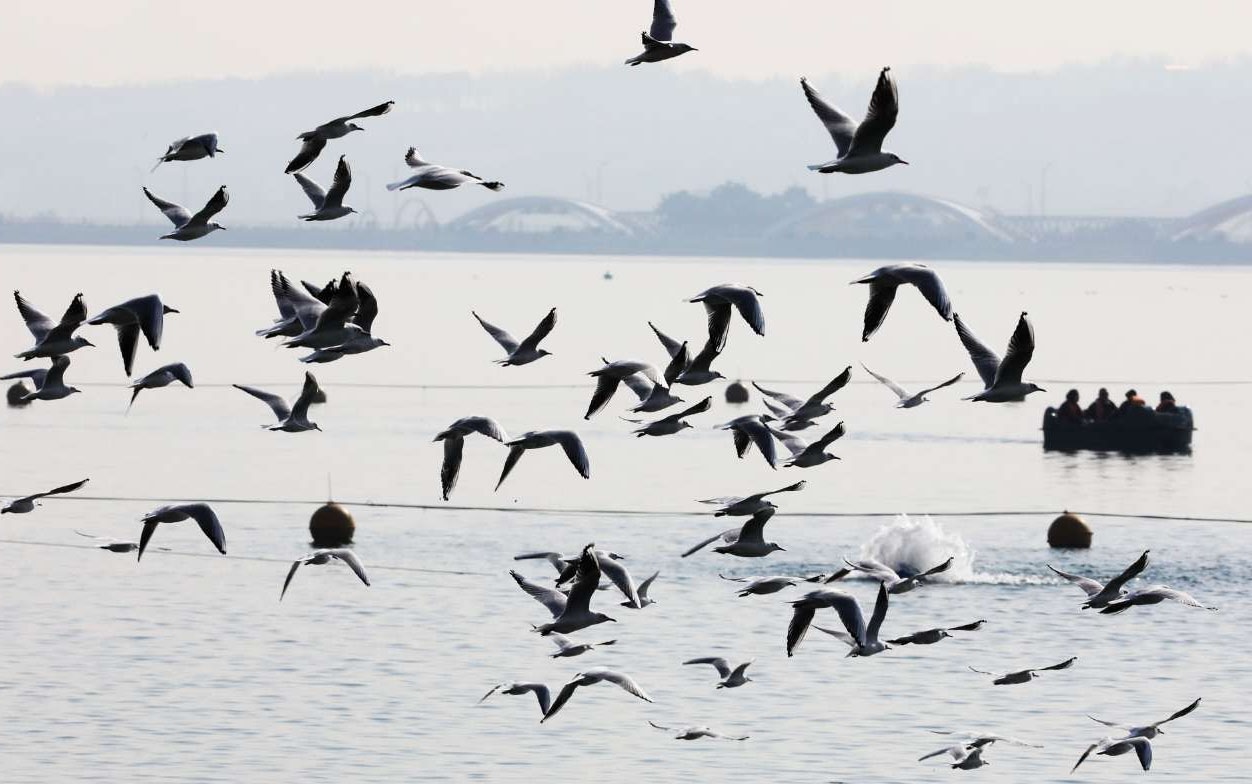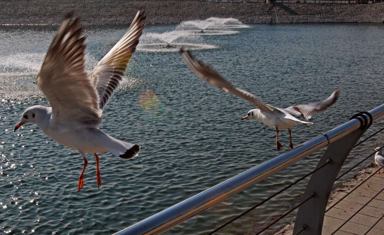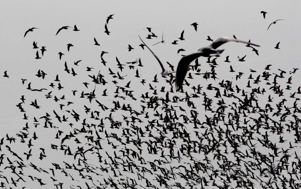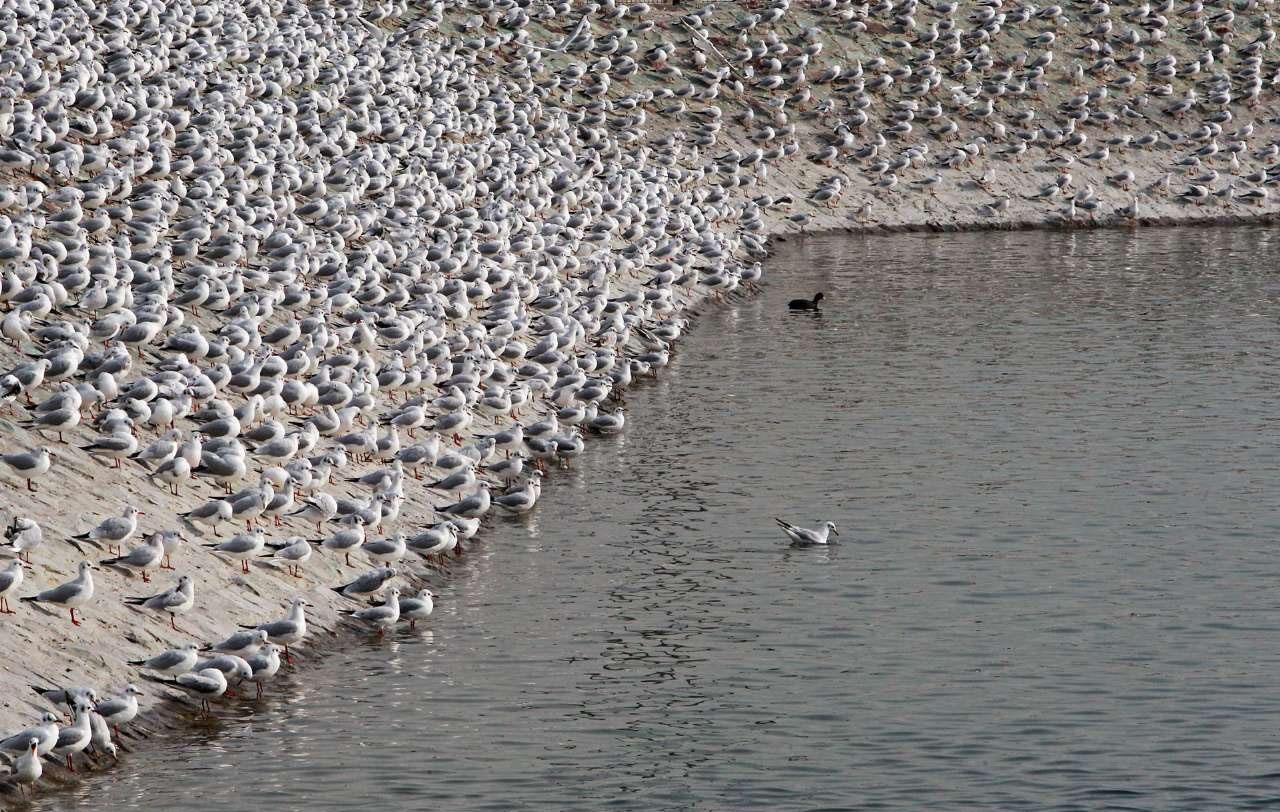 منوعات - الكوثر: تصل في مشهد ساحر مئات الطيور المهاجرة بما فیها أنواع النوارس من أوروبا الشرقية وشمال سیبیریا، الى بحيرة "جيتكر" الواقعة شمال غربي طهران في موسم الخريف بحثا عن الدفء.