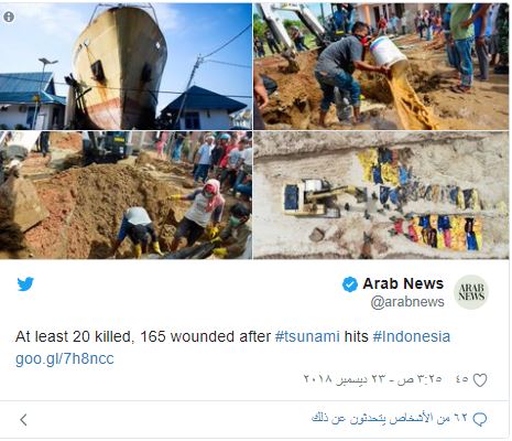 وقال المتحدث باسم الوكالة سوتوبو بورو نوجروهو، إن الحادث دمر مئات المنازل وإن شخصين مازال في عداد المفقودين.