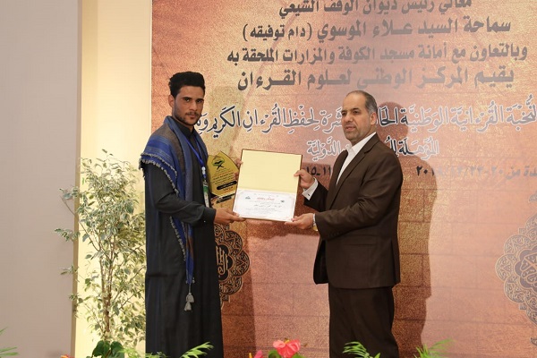 أقيم صباح أمس الاحد 23 ديسمبر الجاري في مسجد الكوفة المعظم، الحفل الختامي لمسابقة النخبة الوطنية الحادية عشرة لحفظ القرآن الكريم وتلاوته بعد ثلاثة أيام من التنافس الشريف والعالي المستوى لما قدمه الحفاظ والقراء المشاركون من مستوى عالي الجودة.