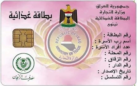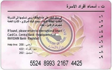 وحذرت الوزارة المواطنيين من الوقوع في شبكات التزوير، مؤكدة انها ستعتمد تصميما بالتعاون مع الامم المتحدة وبرنامج الاغذية العالمي لا يمكن تزويره ويعتمد على بصمة العين لاستحصال البطاقة التموينية .