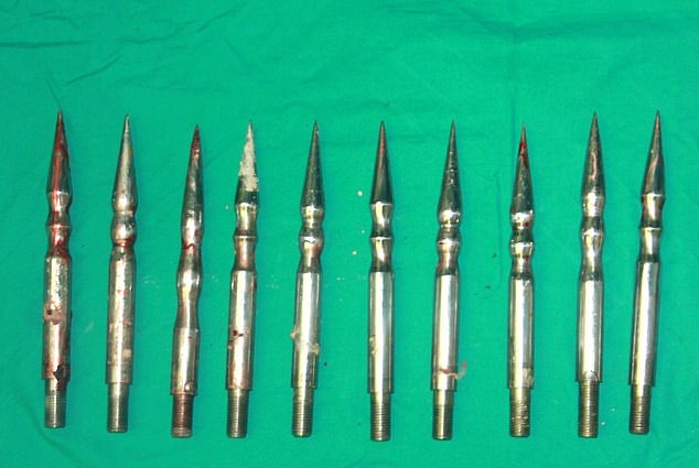 تمكن الأطباء في نهاية الأمر من إزالة العشرة قضبان، وأصبحت حالة الرجل مستقرة بعد أن كان أحد القضبان على بعد 1 سم من مركز عصبي حساس.