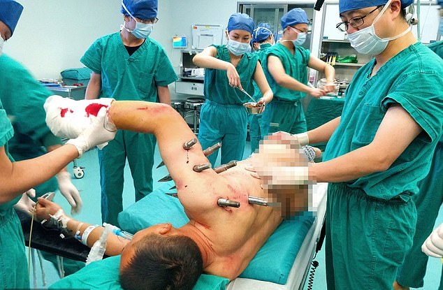 وفقا لما نشرته صحيفة "ديلي ميل" البريطانية، سقطت آلة ضخمة على العامل بشكل مفاجئ أثناء ممارسته عمله في أحد المصانع، وتركته بعدد من القضبان الصلبة تخترق ذراعه وصدره، وبلغ طول القضيب الواحد 30 سم، وقطره 1.5 سم.