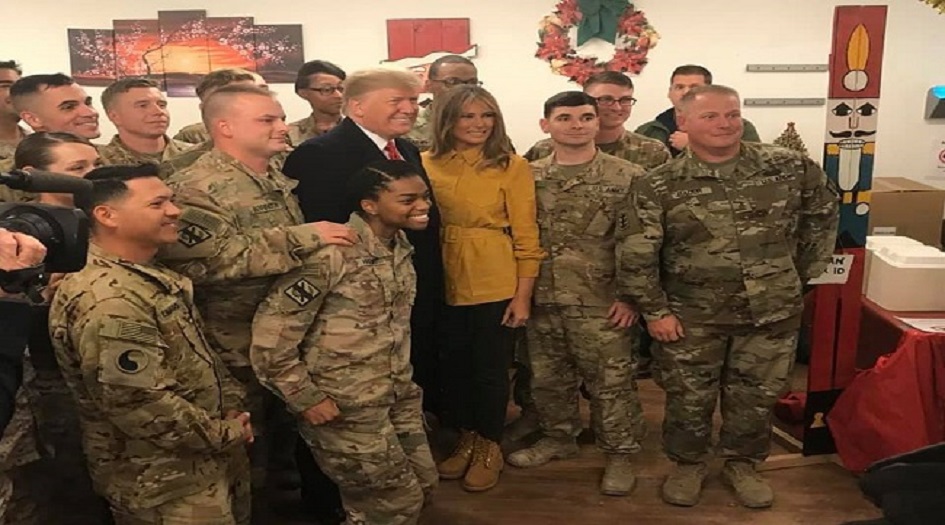 يذكر ان الرئيس الأمريكي دونالد ترامب، وصل أمس الأربعاء إلى قاعدة عين الأسد في محافظة الأنبار غرب العراق عند الساعة 19:16 بالتوقيت المحلي برفقة زوجته ميلانيا ومجموعة صغيرة من المساعدين ووكلاء الخدمات السرية، ومجموعة من الصحافيين، واستغرقت الزيارة نحو ثلاث ساعات فقط.
