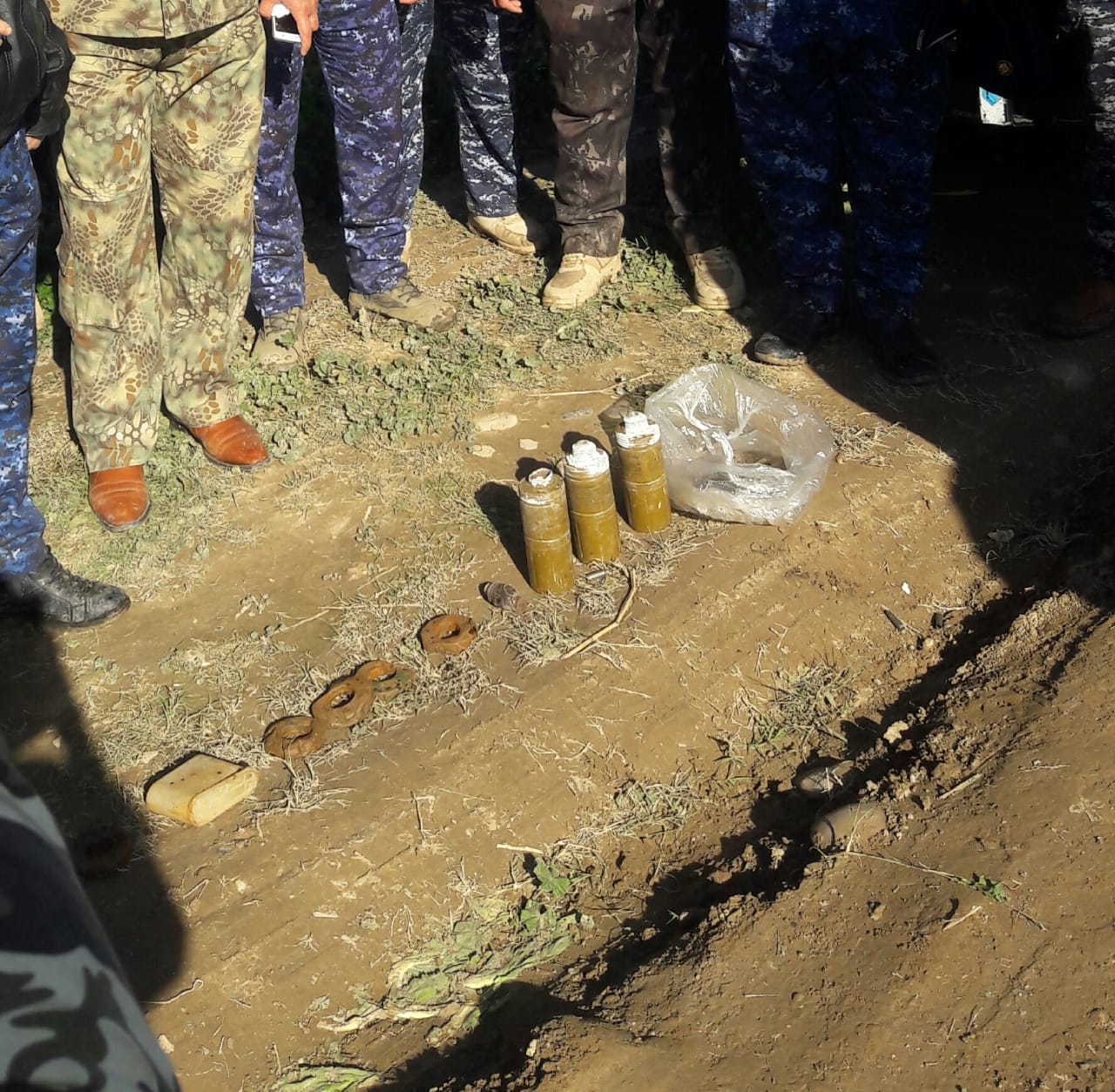 وأضاف" كما عثرت على كيس يحتوي على 3 رمانات ضد الدروع نوع MK3 مع 6حشوات دافعة"، مشيرا الى انه" تم ضبط جميع المواد من فبل مفرزة معالجة المتفجرات"