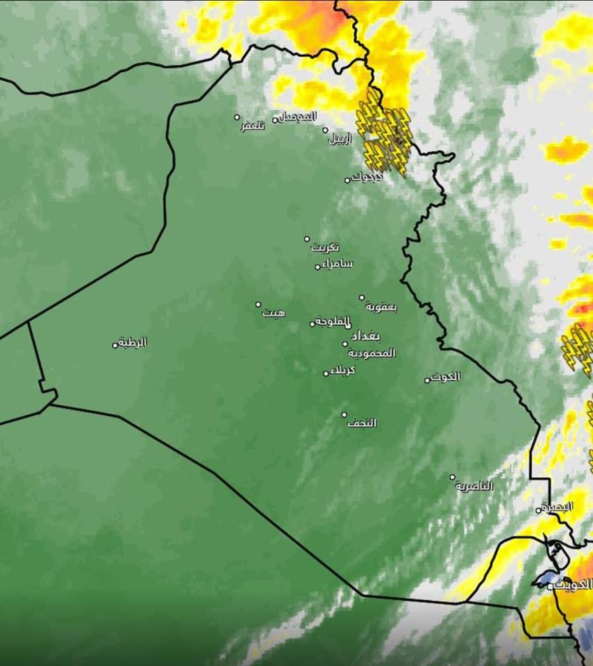 وأضاف أن مدن (السليمانية وأربيل وكركوك ودهوك وشمال الموصل وشمال ديالى) تنتهي فرص الامطار فيها خلال الليل.