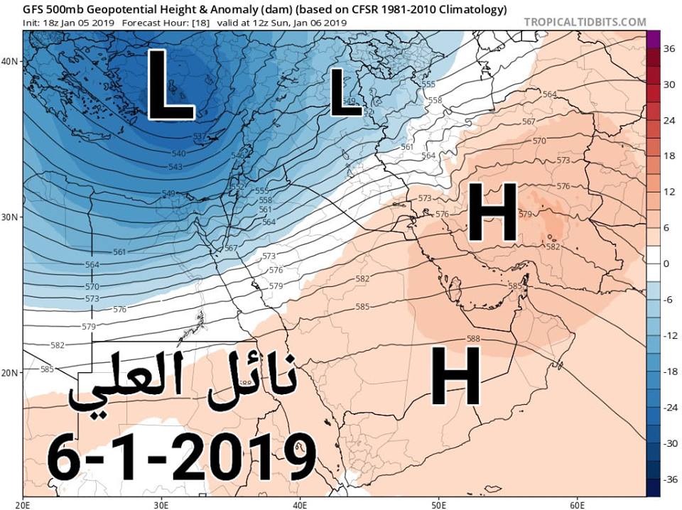 وذكر المتنبىء الجوي نائل العلي، في منشور على صفحة "حالة الطقس في العراق" اليوم، 6 كانون الثاني 2019، ان أجواء غائمة جزئيا إلى غائمة كليا تسود خلال اليوم الأحد مع فرصة زخات مطر متقطعة عشوائية تزداد أحيانا، على بعض مناطق الفرات الأوسط والمناطق الوسطى وبالأخص الشرقية منها تنتنهي خلال صباح اليوم.
