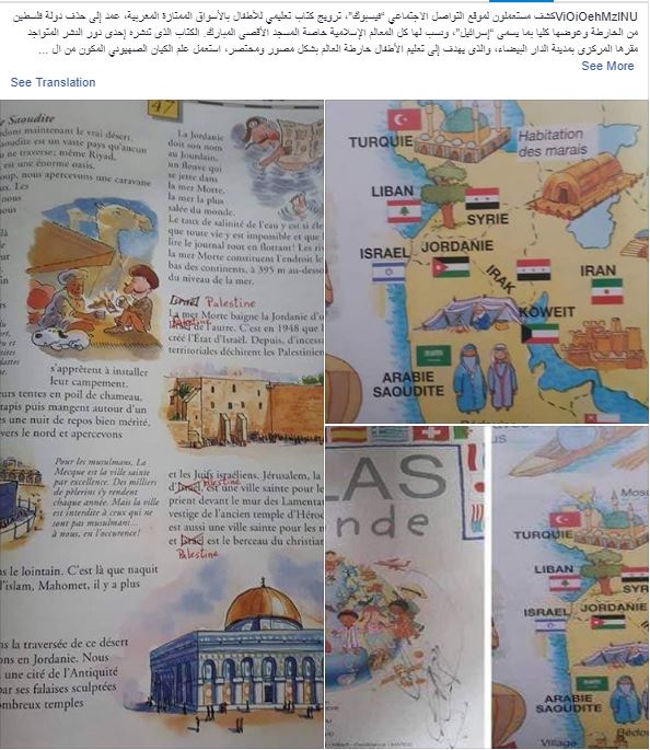 وكشف الناشطون محاولات التضليل الواردة في الكتاب الناطق باللغة الفرنسية مشيرين إلى ما ورد في الكتاب، حيث اعتبر أن “القدس عاصمة إسرائيل، وهي مدينة مقدسة لدى اليهود”، وأن ما يسمى “إسرائيل” دولة أسسها اليهود في سنة 1948، وأنه “يقطنها الفلسطينيون العرب واليهود الإسرائيليون”.
