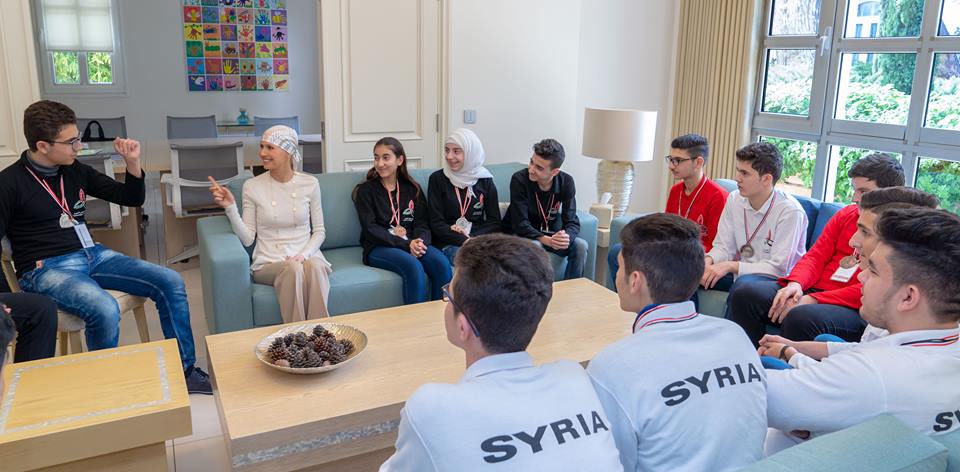 اسقبلت السيدة الأولى في سوريا، أسماء الأسد، الفائزين الأوائل في الأولمبياد العلمي السوري على المستوى الوطني.