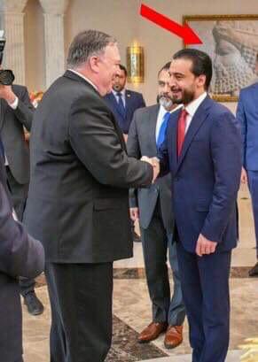 وتناولت مواقع التواصل الاجتماعي امس الخميس، صورة تظهر منحوتة تاريخية لجندي فارسي في مراسم استقبال رئيس البرلمان لوزير الخارجية الامريكي.