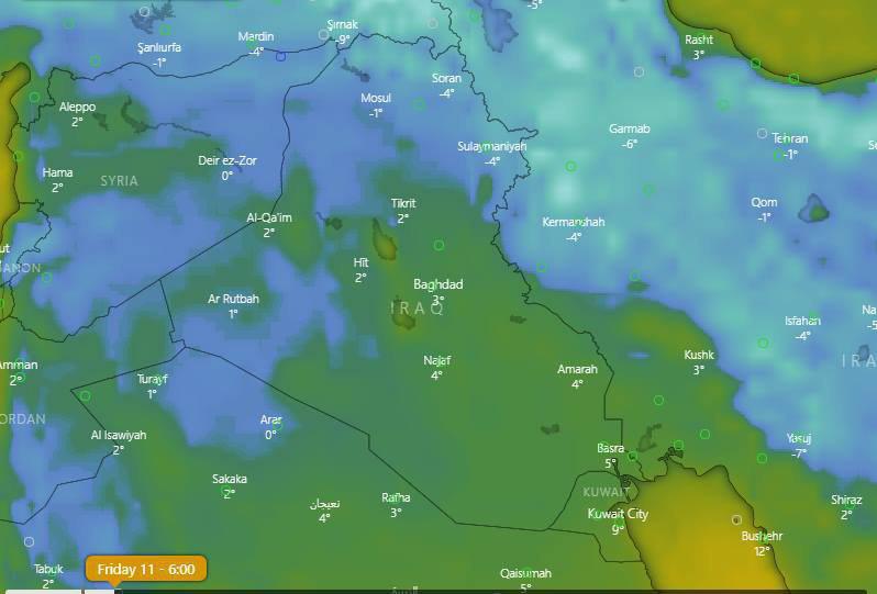 توقع متنبئ جوي، مزيد من الانخفاض بدرجات الحرارة فجر الجمعة في مدن العراق.