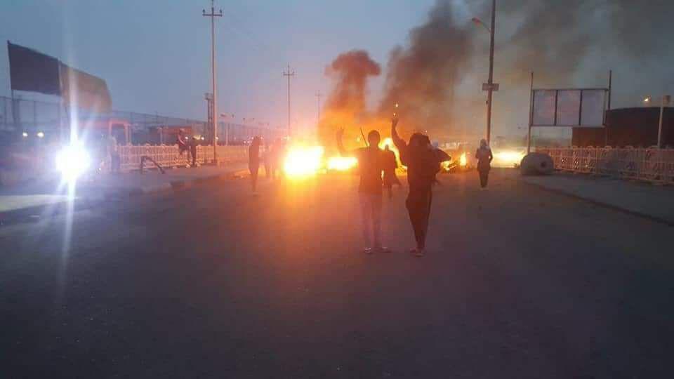 عمد متظاهرون في محافظة البصرة، اليوم الاحد، الى قطع طريق {بغداد-البصرة} للمطالبة بتوفير فرص العمل.
